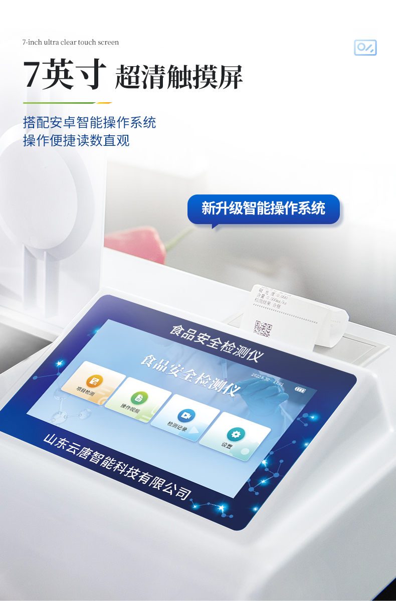 8.4、打印系統:內置全新打印機,可以打印:項目名稱,二維碼,抽樣信息、檢測信息,受檢信息、復核信息、抽樣日期、檢測日期等信息的打印。