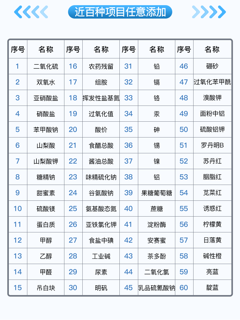 6、內置新國家限量標準,與所測結果進行現場比對,并持續更新標準。