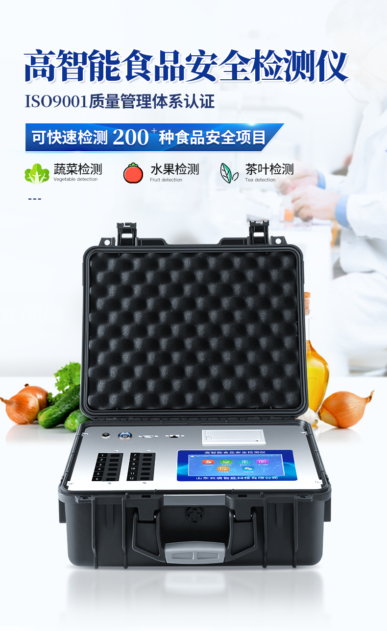多功能果蔬肉類檢測儀可快速檢測幾十種項(xiàng)目,包含各種蔬菜水果中有機(jī)磷、氨基甲酸酯類農(nóng)藥,病害肉診斷:肉類新鮮度、肉中組胺、揮發(fā)性鹽基氮;各種肉食品中瘦肉精激素類殘留;抗生素殘留類藥物等現(xiàn)場的定性定量檢測。
