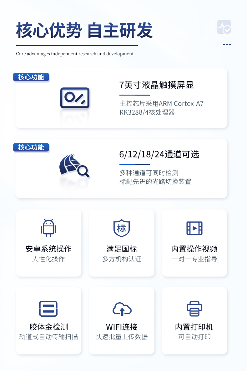 7、膠體金模塊檢測方式:軌道式自動(dòng)傳輸掃描,檢測完成后自動(dòng)退出檢測卡。
