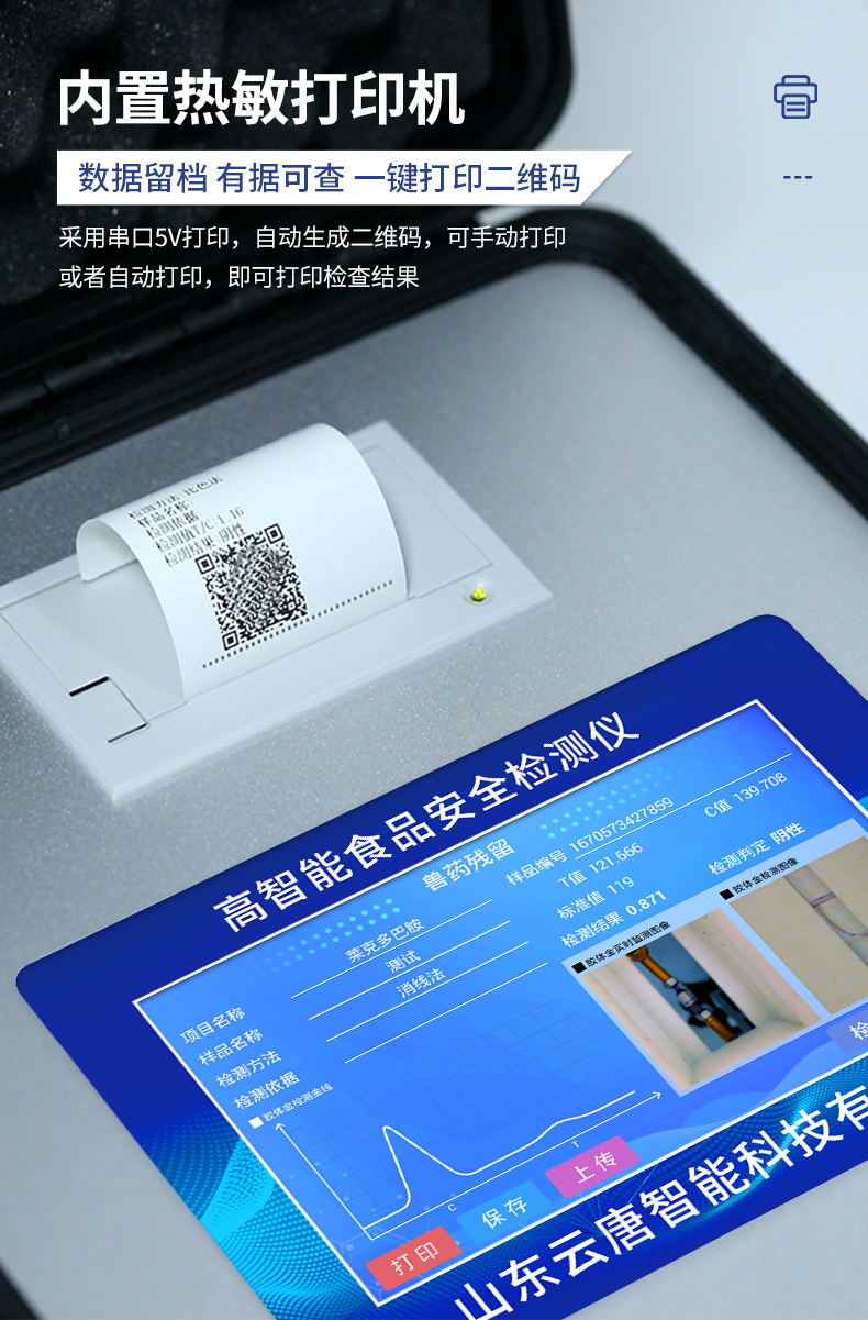 3、新一代高速熱敏打印機(jī),檢測完成可自動(dòng)打印或批量打印檢測報(bào)告和二維碼。