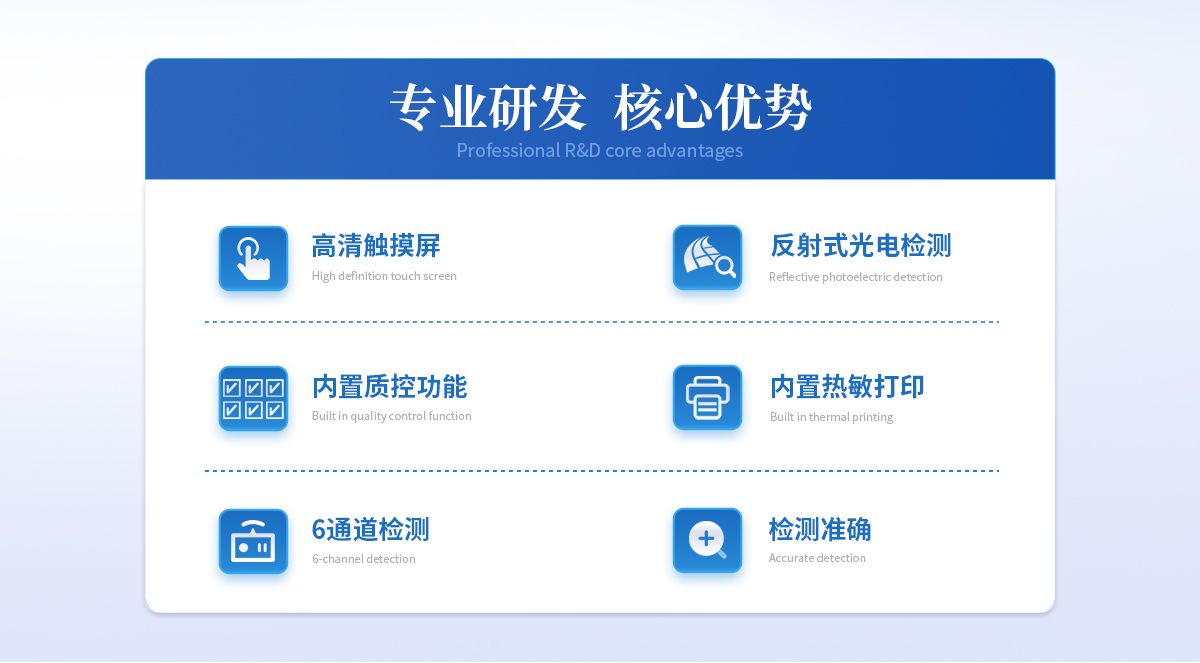 | 1、食品安全: 致病微生物、農(nóng)獸藥殘留、生物毒素等快速篩查。 | 2、畜牧獸醫(yī): 動物疫病診斷、動物源性安全指標檢測。 | 3、環(huán)境監(jiān)測: 水質、土壤特定污染物篩查。 | 4、科研與生物安全: 免疫層析實驗定量分析、生物因子檢測。 | 5、其他領域: 所有使用膠體金免疫層析試紙條的場景。 |