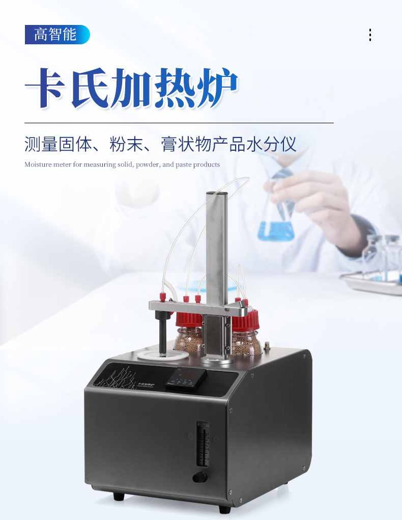 | 卡氏加熱爐可以連接萬通/梅特勒等國內外品牌卡爾費休水分儀,測量固體、粉末、膏狀物產品水分儀。 |