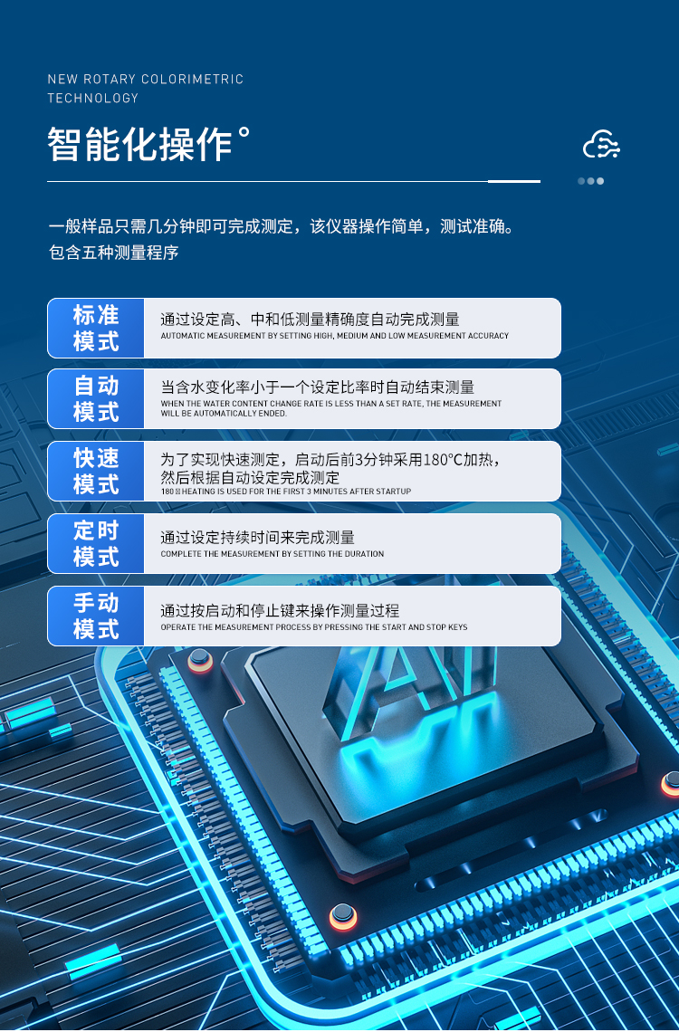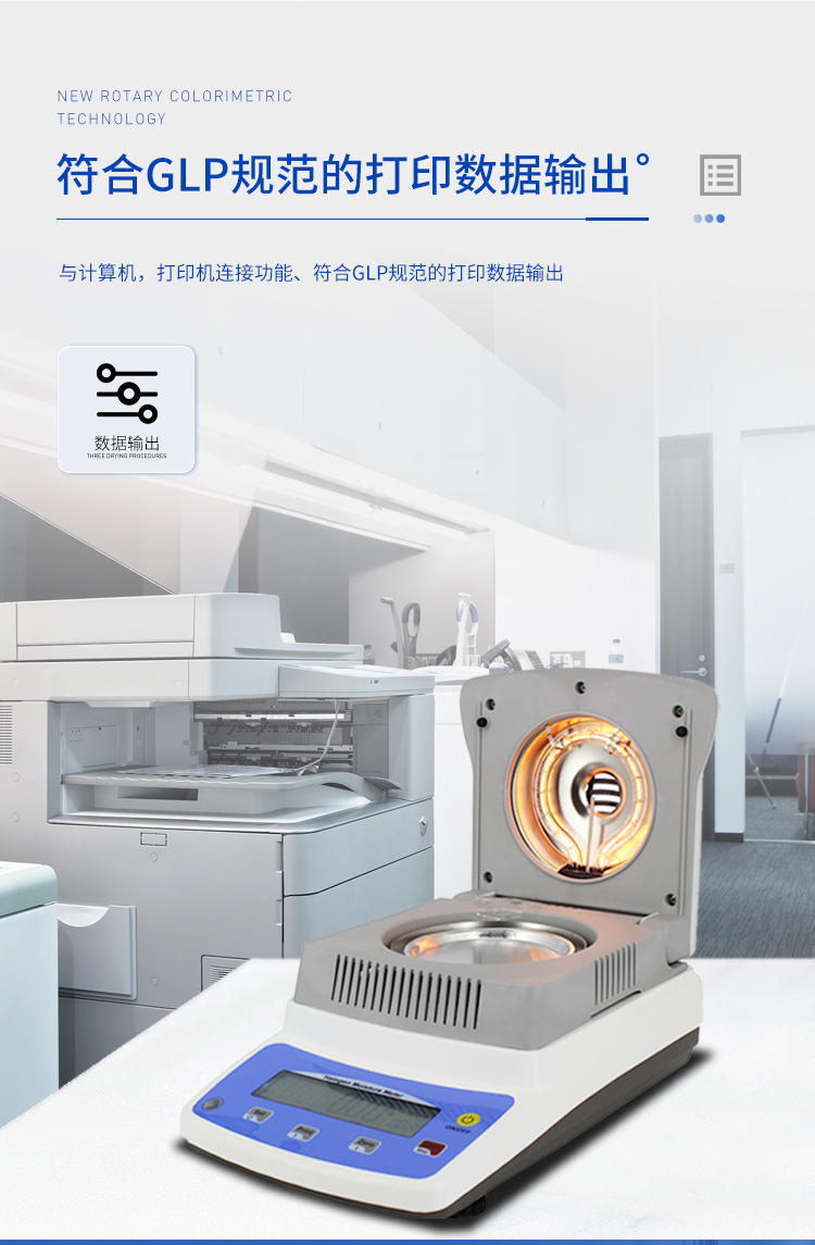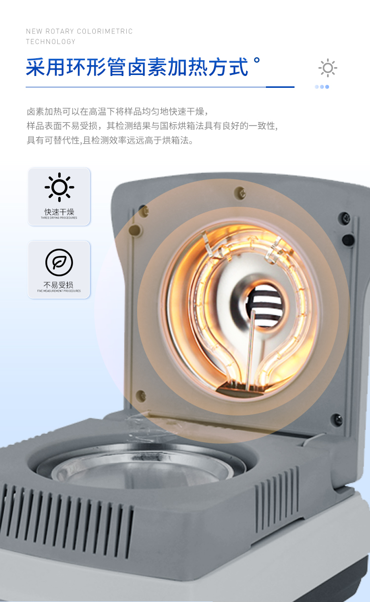 環(huán)狀的鹵素?zé)舸_保樣品得到均勻加熱,操作簡(jiǎn)便、測(cè)量準(zhǔn)確。鹵素水分測(cè)定儀在測(cè)量樣品重量的同時(shí),儀器采用環(huán)形管鹵素加熱方式,快速干燥樣品,在干燥過程中,水分儀持續(xù)測(cè)量并即時(shí)顯示樣品丟失的水分含量%,干燥程序完成后,*終測(cè)定的水分含量值被鎖定顯示。與國(guó)際烘箱加熱法相比,鹵素加熱可以在高溫下將樣品均勻地快速干燥,樣品表面不易受損,其檢測(cè)結(jié)果與國(guó)標(biāo)烘箱法具有良好的一致性,具有可替代性,且檢測(cè)效率遠(yuǎn)遠(yuǎn)高于烘箱法。智能化操作,一般樣品只需幾分鐘即可完成測(cè)定。該儀器操作簡(jiǎn)單,測(cè)試準(zhǔn)確,顯示部分采用液晶顯示屏-使屏幕更加清晰明亮,示值清晰可見,分別可顯示水分值,樣品初值,終值,測(cè)定時(shí)間,溫度初值,*終值等數(shù)據(jù),并具有與計(jì)算機(jī),打印機(jī)連接功能、符合GLP規(guī)范的打印數(shù)據(jù)輸出。