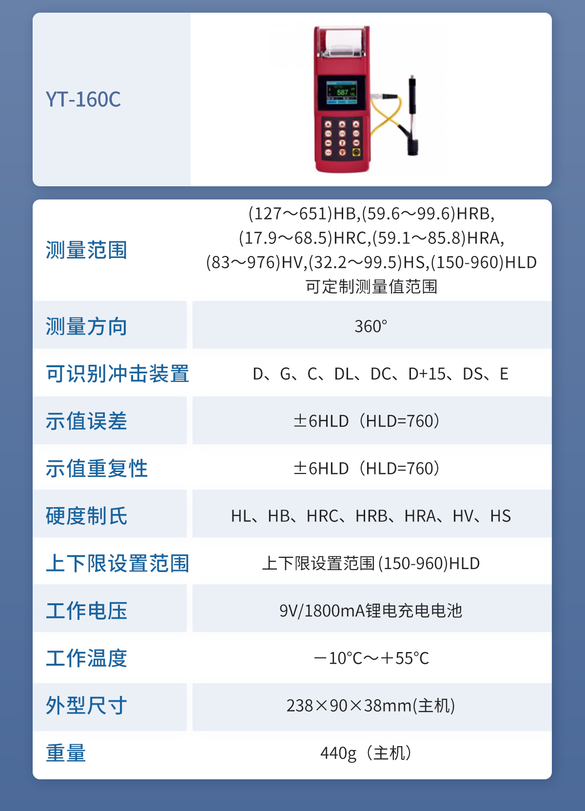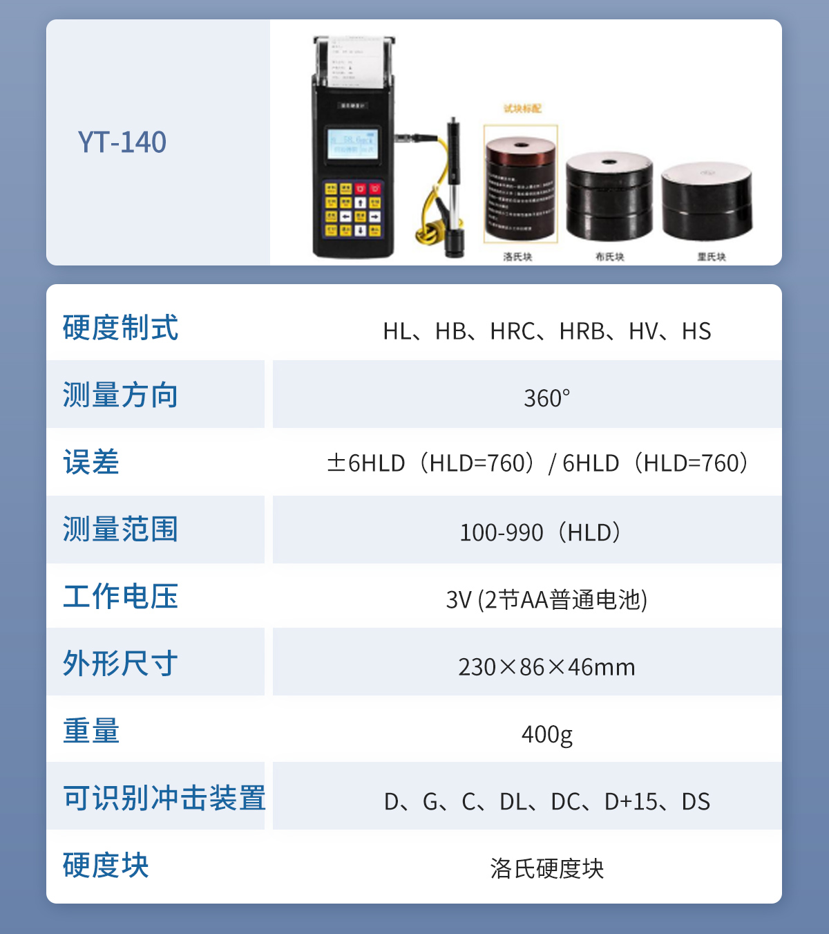 | 可選配 | 各種異型支承環、異型沖擊裝置、標準硬度塊、通訊軟件 |