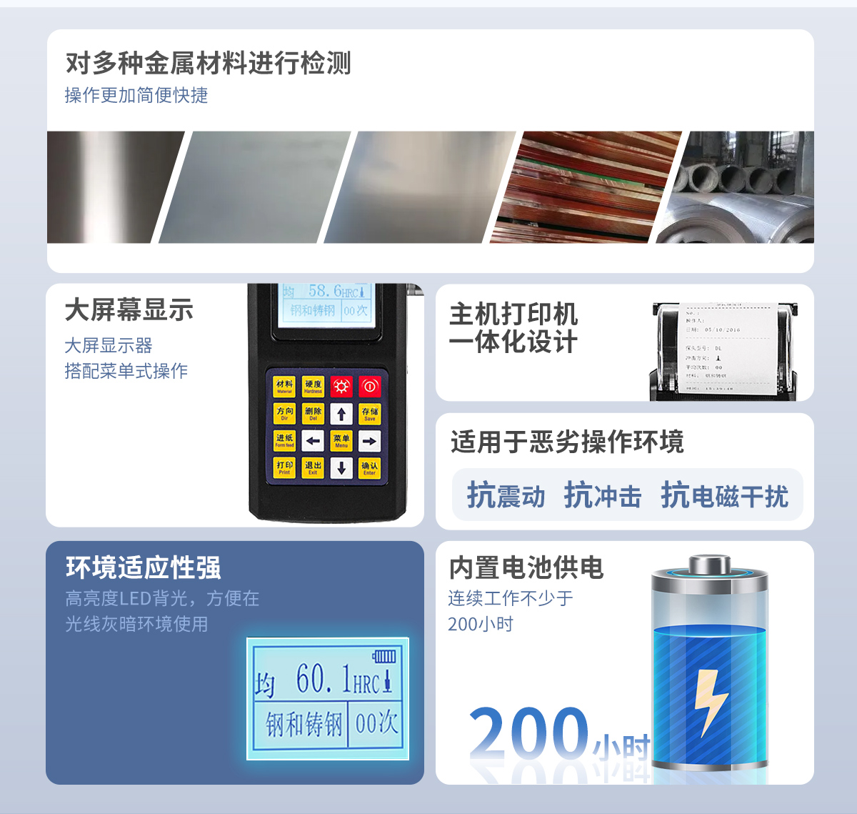 ● 依據里氏硬度測量原理,可以對多種金屬材料進行檢測,測值準確穩定;