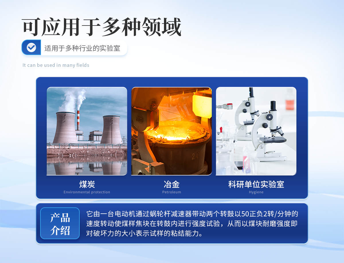 產品概述:該儀器是測定煉焦用煤的粘結能力——羅加指數及粘結指數的專用儀器。適用于煤炭,冶金焦化部門及科研單位的實驗室專用。它由一臺電動機通過蝸輪桿減速器帶動兩個轉鼓以50正負2轉/分鐘的速度轉動,使煤樣焦塊在轉鼓內進行強度試驗,從而以煤塊耐磨強度——即對破壞力的大小表示試樣的粘結能力。結構簡介:主要組成2026-04-14