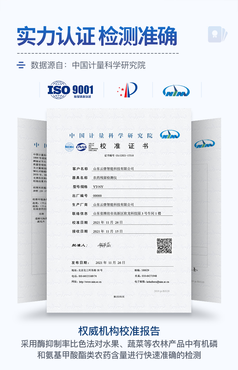 檢測標(biāo)準(zhǔn):依據(jù)國家標(biāo)準(zhǔn)方法(GB/T5009.199-2003)以及世界衛(wèi)生組織WHO、世界糧農(nóng)組織FAO殘留農(nóng)藥檢測標(biāo)準(zhǔn)、世界環(huán)境保護(hù)局EPA參照攝入量等要求來設(shè)計(jì)。采用酶抑制率比色法對水果、蔬菜等農(nóng)林產(chǎn)品中有機(jī)磷和氨基甲酸酯類農(nóng)藥含量進(jìn)行快速準(zhǔn)確的檢測,乙酰膽堿酯酶和丁酰膽堿酯酶試劑均可以使用,符合國家標(biāo)準(zhǔn)和農(nóng)業(yè)部標(biāo)準(zhǔn)的要求。