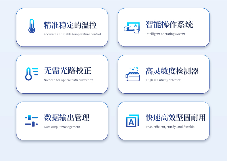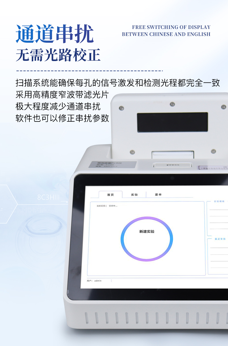 1.智能操作系統,實驗盡在掌握A雙模式靈活控制:支持通過儀器觸摸屏獨立運行,也支持通過電腦軟件進行遠程控制與數據管理,適應不同實驗場景需求。B程序更新與預設:支持在線更新實驗程序,并內置豐富的預設實驗程序模板,用戶亦可自定義保存常用模版,實現一鍵快速啟動,極大提升操作效率。C極簡啟動體驗(可選配):可定制集成攝像頭掃描系統,用戶只需掃描樣品板或程序卡的二維碼,即可自動識別并調用對應實驗程序,簡化流程,避免人為設置錯誤。D操作簡單:無論是觸摸屏界面還是電腦軟件,均設計得直觀易懂,新用戶也能快速上手。預置常用程序模板,進一步簡化操作流程。2.精準穩定的溫控與光學核心A長久精準的溫控系統:采用進口***TEC半導體制冷模塊,控溫精準(±0.1°C),孔間溫度均勻性**(≤±0.3°C)。系統穩定性卓越,長期使用性能衰減小,校準周期長達數年,顯著降低維護成本與運營中斷。B免維護的靈敏光學系統:配備4個獨立LED光源與4個獨立光電二極管檢測器,實現四通道熒光同步精準檢測。采用超長壽命進口光源,設計壽命期內免維護,無需額外校準或更換,保障檢測結果長期一致性與高靈敏度。C卓越的數據質量:實驗線性相關性高(R2≥0.999),重復性優異(孔間CV值低),確保定量結果準確可靠,數據置信度高3.**便捷的數據與輸出管理A多重數據導出方式:支持通過USB存儲設備直接拷貝,或經由Wi-Fi無線網絡傳輸數據至本地服務器或云端,方便靈活,滿足各類實驗室數據管理習慣。B豐富的報告導出與打印:支持生成并導出多種格式(如PDF、Excel)的實驗報告。儀器兼容USB熱敏打印機、藍牙無線打印機及常規A4打印機,可直接在儀器上或通過電腦一鍵導出并打印專業報告,便于結果存檔與即時分享。4.快速**與堅固耐用A升降溫速度快:優化設計的溫控系統具備高速升降溫能力,顯著縮短單次循環與整體檢測時間,提升實驗通量。B超長使用壽命:核心部件均選用工業級耐用材料與設計,整機運行穩定可靠,致力于為用戶提供長久的投資回報。