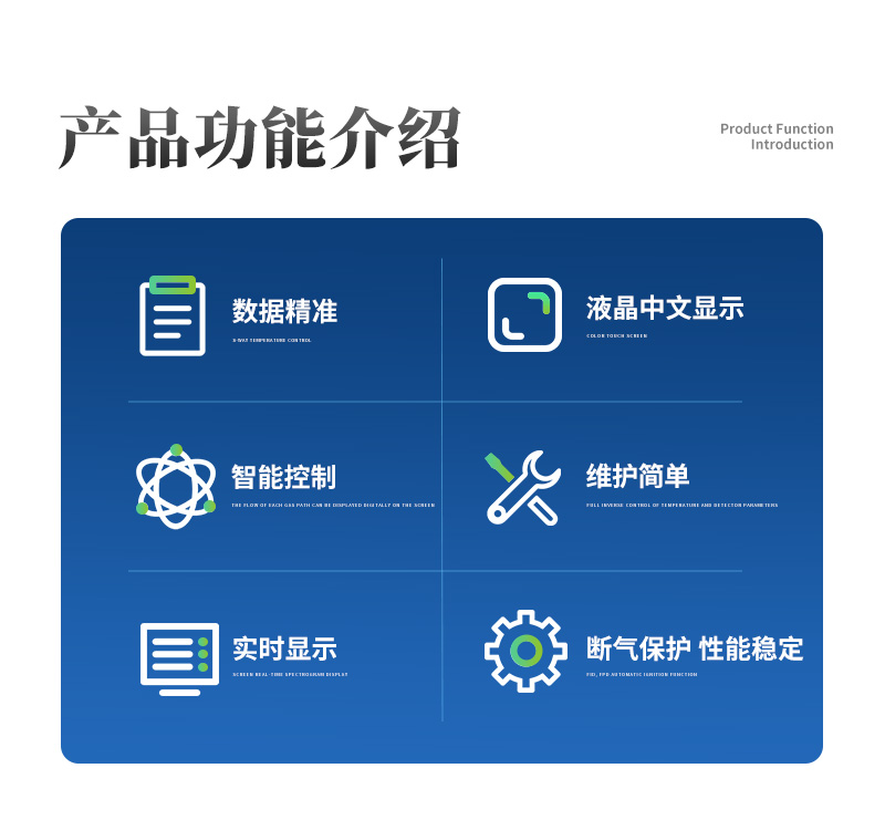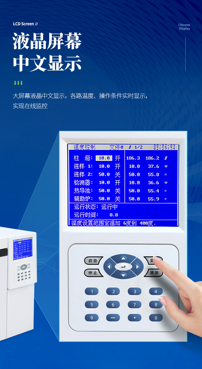 | 中、英文切換顯示技術(shù),5.7寸液晶大屏幕(320*240)。多達(dá)20個顯示界面,信息量豐富,可儲存20套色譜分析數(shù)據(jù),并可隨時調(diào)用。 | 工業(yè)化設(shè)計外形,新穎大方、美觀實用,結(jié)構(gòu)合理,操作舒適。 | 斷氣保護(hù)功能,保護(hù)色譜柱及熱導(dǎo)池、電子捕獲檢測器等。 | 八階線性程序升溫功能及智能雙后開門設(shè)計,真正實現(xiàn)了近室溫控制,控溫精度高達(dá)±0.1℃滿足寬范圍分析要求。 | 完善的超溫?zé)岜Wo(hù)及鉑電阻開路、短路報警功能,保證儀器不受損壞。 | 自診斷功能及故障中文提示,使用戶方便的知道問題原因及部位。 | 采用**的FLASH記憶系統(tǒng),使數(shù)據(jù)保護(hù)不再依賴于電池。 | 微機控制FID檢測器實現(xiàn)了自動點火功能。 | 高精度穩(wěn)壓穩(wěn)流模式使氣流精密穩(wěn)定,實現(xiàn)了多路氣路控制系統(tǒng)。 | 高性能的毛細(xì)管汽化室,實現(xiàn)了真正意義上的分流/不分流進(jìn)樣系統(tǒng)。 | 能同時安裝1-4個檢測器。可以雙FID或雙TCD或雙ECD或雙NPD運行。TCD帶有雙路柱后補充氣,故可單柱、雙柱、毛細(xì)管柱使用。 | 能同時安裝運行1-3套毛細(xì)管柱并可同時運行3個檢測器。1臺儀器相當(dāng)于3臺(柱室公用)。或雙FID雙毛。雙TCD雙毛。雙TCD同時工作,互不影響,載氣可相互獨立。避免了更換色譜柱及檢測器的繁瑣。 | 可實現(xiàn)檢測器的串、并聯(lián)使用,通過事件控制,進(jìn)行智能自動轉(zhuǎn)換。 | 儀器可安裝轉(zhuǎn)化爐、熱解吸儀、自動進(jìn)樣器、自動頂空進(jìn)樣器、裂解器等多種進(jìn)樣方式。可定時自動采樣,實現(xiàn)自動在線分析。 | 儀器特別適用于各類企業(yè)、技術(shù)監(jiān)督局、環(huán)境監(jiān)測、衛(wèi)生防疫、大學(xué)院校、科學(xué)研究等部門。 | 具備FID、TCD、ECD、FPD等多種檢測器選擇配備。 |