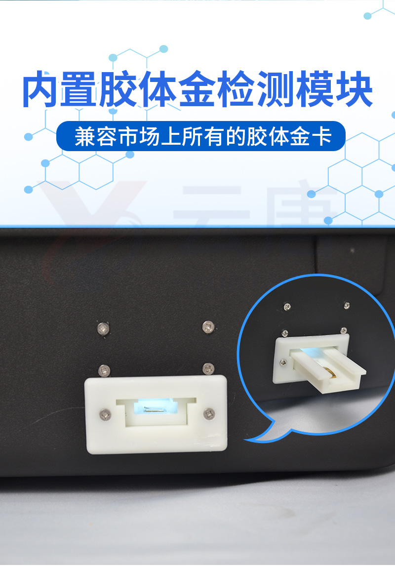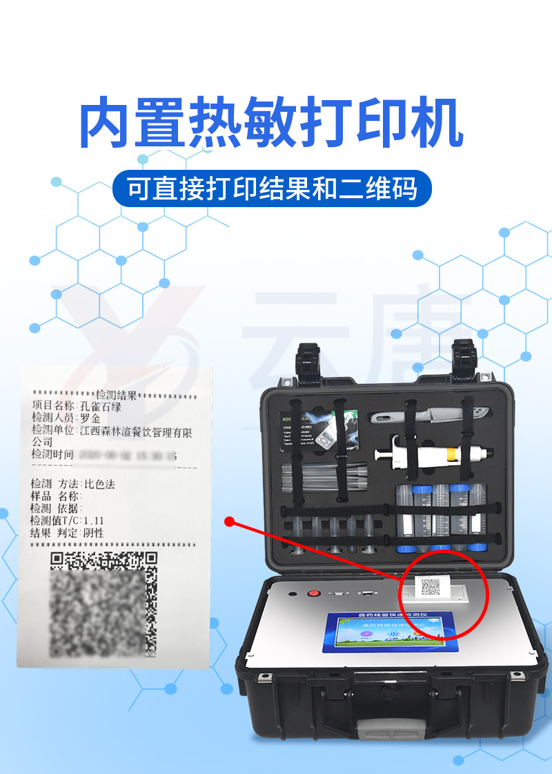 | 安卓智能操作系統,采用更加**和人性化操作,儀器具有網線連接、wifi聯網上傳、4G無線遠傳功能,快速上傳數據。 | 智能化程度高,儀器具有自檢功能:具有開機自檢和調零功能,具有自動檢測重復性功能。 | 新一代高速熱敏打印機,檢測完成可自動打印檢測報告和二維碼。 | 儀器帶有監管平臺,數據可局域網和互聯網數據上傳,檢測結果直接傳至食品安全監管平臺。進行區域食品安全監管及大數據分析處理與數據統計,檢測區域食品安全長短期動態,達到食品安全問題預估、預警 | 一體化便攜式快檢設備,滿足現場及流動檢測使用需求,能夠在同一軟件下實現所有檢測項目的檢測,并可通過同一窗口直觀顯示檢測結果。 | 膠體金模塊檢測方式:軌道式自動傳輸掃描,檢測完成后自動退出檢測卡。 | CT線自動識別,無需手動調整。 | 儀器具有品類多種類樣品菜單庫,可靈活選擇檢測樣品,不同的檢測通道可同時檢測不同的樣品項目。 | 樣品處理簡單省力,整體操作快速、安全、便捷。 | 儀器具有自身保護功能,可設置用戶名及密碼,防止非工作人員操作等。 | 高靈敏度,高檢測精度,高重復性精度,掃描式高精度光學傳感器。 | 內置強大的數據庫,可在儀器上直接選擇樣品名稱、檢測指標、送檢單位等信息,也可在儀器上直接編輯錄入樣品名稱、檢測指標、送檢單位等信息并保存進樣品數據庫。 | 儀器具有重新校準、鎖定、恢復出廠設置功能。 | 結果判定線可修改,對照值標定值可保存,斷電不丟失數據。 | 兼容市場上所有的膠體金卡,使用耗材不受限制,極大增強用戶使用體驗。 |
