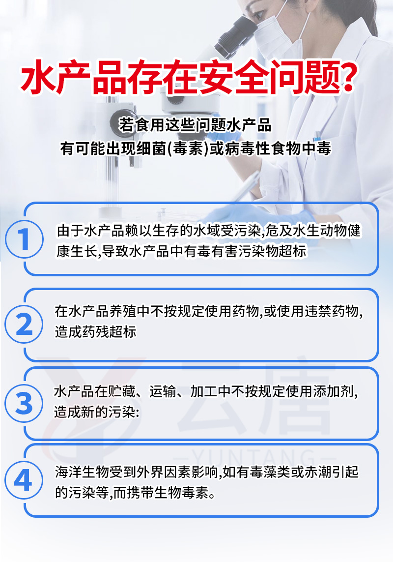 適用于魚、蝦等水產中孔雀石綠、氯霉素、硝基呋喃類:呋喃唑酮(AOZ)、呋喃它酮( AMOZ )、呋喃妥因(AHD)、呋喃西林(SEM)、呋喃那斯、磺胺類、激素類、四環素類、金霉素、土霉素、甲砜霉素、氟苯尼考、喹諾酮類藥物:噁喹酸、諾氟沙星、恩諾沙星、環丙沙星、氧氟沙星的定性定量檢測。