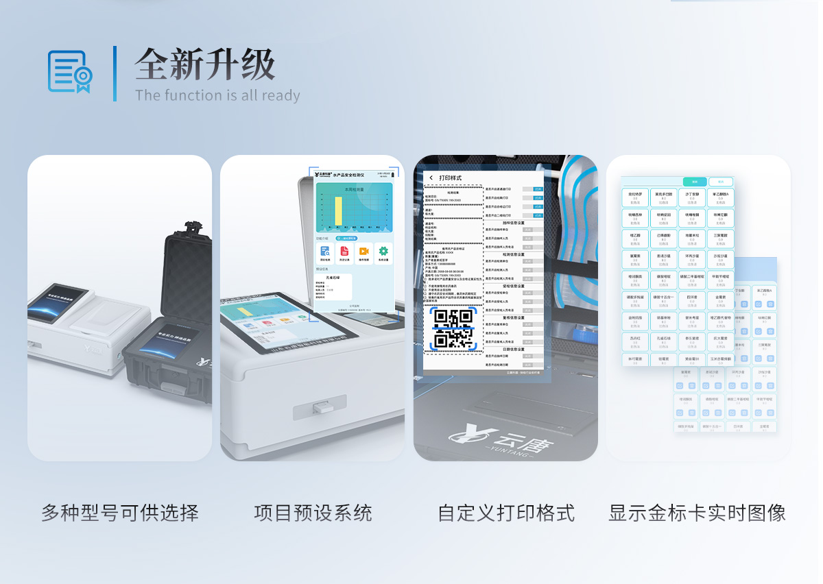 | 儀器采用10.1英寸液晶觸摸屏顯,搭配運行安卓智能操作系統(tǒng),主控芯片采用ARM Cortex-A7,RK3288/4核處理器,主頻1.88Ghz,運轉(zhuǎn)速度更快速,性能更強。 | 儀器功能包括:膠體金檢測模塊、數(shù)字化管理模塊、無線通訊模塊等,可以滿足同一軟件下實現(xiàn)所有檢測項目的檢測,并在同一窗口展示檢測結果。 | 一體化便攜式快檢設備,采用交直流兩用供電方式,可連接車載電源,配備6ah大容量充電鋰電池,可以滿足現(xiàn)場及流動檢測使用的需求。儀器尺寸:43×35×20cm, 主機凈重:5.1kg | 系統(tǒng)自帶數(shù)據(jù)集成模塊,設備首頁自動統(tǒng)計檢測數(shù)據(jù)包含:周檢測數(shù)據(jù)、月檢測數(shù)據(jù),全部檢測總數(shù)量,均包含檢測總數(shù),合格數(shù),不合格數(shù),以及相關柱形分析圖,對各項檢測數(shù)據(jù)清晰掌握,無需電腦查詢,更加快捷直觀。 | 儀器具有任務預設模塊,可在樣品送檢前提前預設樣品名稱、檢測指標、送檢單位等信息,樣品送檢時一鍵調(diào)取保存信息,檢測更加方便快捷。 | 軌道式自動傳輸掃描方式,可實時顯示金標卡實時圖像,系統(tǒng)自動分析并呈現(xiàn)出CT曲線圖,CT線自動識別,無需手動調(diào)整,完成檢測后自動退出檢測卡。 | 結果判定線可修改,對照值標定值可保存,斷電不丟失數(shù)據(jù)。 | 兼容市場上其他膠體金卡,使用耗材不受限制,極大增強用戶使用體驗。 | 儀器檢測系統(tǒng)擁有龐大數(shù)據(jù)庫,并且構建了完善的檢索、修訂功能。食品庫涵蓋多種樣品名稱,可按需添加或刪除、編輯樣品名稱;產(chǎn)品數(shù)據(jù)庫以及歷史檢測記錄支持一鍵檢索功能。 | 系統(tǒng)打印自定義化,打印格式多樣化,產(chǎn)品合格證(國家標準要求),二維碼,抽樣信息、檢測信息,受檢信息、復核信息、抽樣日期、檢測日期等信息結果,可按需求自行設置打印內(nèi)容。 | A4紙版本報告打印功能(可選配):設備擁有兩種結果展示方式,可以自動生成A4打印模板和小票打印模板兩種樣式,可通過WiFi及網(wǎng)線等方式鏈接外置打印機可進行打印 | 儀器具有 wifi 聯(lián)網(wǎng)上傳、RJ45網(wǎng)線連接功能,可以快速上傳數(shù)據(jù)。同步對接監(jiān)管平臺,數(shù)據(jù)可局域網(wǎng)和互聯(lián)網(wǎng)數(shù)據(jù)上傳,檢測結果直接傳至食品安全監(jiān)管平臺。進行區(qū)域食品安全監(jiān)管及大數(shù)據(jù)分析處理與數(shù)據(jù)統(tǒng)計,檢測區(qū)域食品安全長短期動態(tài),達到食品安全問題預估、預警。 | 設備支持U盤存儲,標準USB接口,免驅(qū)動安裝。檢測結果存儲容量20萬條以上,可生成Excel表格,進行一鍵拷貝,并具有登錄保護功能,可設置用戶名及密碼,規(guī)范不同人員操作權限,防止非工作人員操作,并且可以進行重新校準、鎖定、恢復出廠設置功能。儀器固件可升級,后期檢測項目可擴充。 | 儀器具有重新校準、鎖定、恢復出廠設置功能。 | 儀器具備遠程升級功能,可定向分客戶分儀器更新,開機后自動更新,并可持續(xù)性免費更新系統(tǒng)版本,無需像傳統(tǒng)產(chǎn)品返廠更新,節(jié)省時間及人力成本并避免了物流運輸返廠升級導致設備損壞的潛在風險。 |