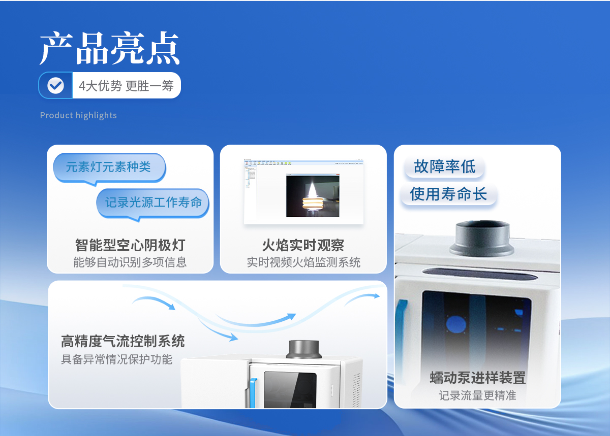 標準曲線的制作只需一個**濃度點的標準溶液,儀器可進行高濃度樣品自動稀釋、自動清洗管路等功能,極大地節省了標準樣品制備時間和使用成本。    5、火焰實時觀察