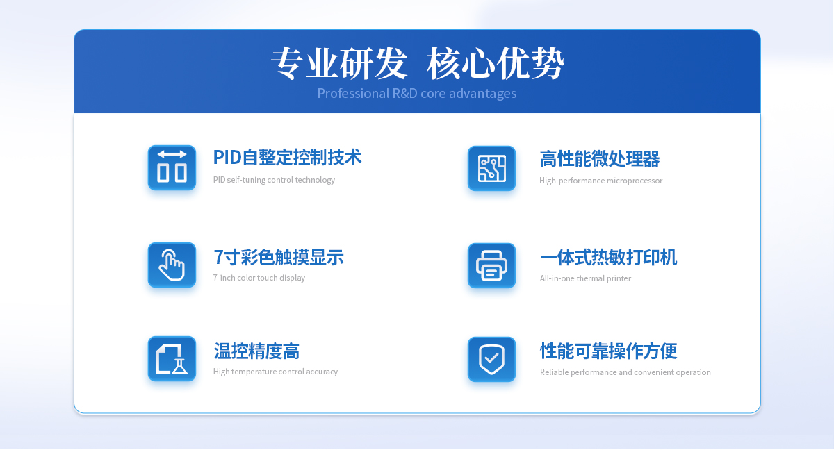 | ★顯示器:5寸彩色觸摸顯示器 | ★打印機:一體式熱敏打印機 | ★控溫范圍:0-100℃ | ★控制精度:±0.05 ℃ | ★加熱功率:1800W | ★加冷卻介質(zhì):水或乙醇 | ★冷浴孔數(shù):2孔 | ★電 源:AC220V±10% | ★頻 率:50Hz±2.5Hz |