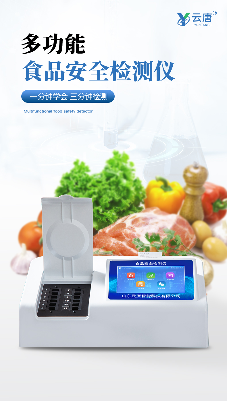 | 安卓智能操作系統,采用更加**和人性化操作,儀器具有網線連接、wifi聯網上傳、GPRS無線遠傳功能,快速上傳數據。 | 智能化程度高,儀器具有自檢功能:具有開機自檢和調零功能,具有自動檢測重復性功能。 | 檢測通道:≥12個檢測通道,可以同時測試多個樣品,每個樣品由程序控制分別獨立工作,不會互相干擾。 | 顯示方式:≥8英寸液晶觸摸屏顯示,人性化中文操作界面,讀數直觀、簡單。 | 配備新一代嵌入式熱敏打印機,可選擇手動打印或者自動打印,檢測完成可自動打印檢測報告和二維碼。 | 光源采用進口超高亮發光二極管,高精度、穩定性強、光源可控、可以關掉不使用的光源,功耗更低。 | 采用USB2.0接口設計,方便數據的存貯和移動,并可隨時與計算機直接相連,并且可用計算機控制儀器。實現數據查詢、瀏覽、分析、統計、打印等。 | 儀器帶有監管平臺。數據可局域網和互聯網數據上傳,檢測結果直接傳至食品安全監管平臺。進行區域食品安全監管及大數據分析處理,檢測區域食品安全長短期動態,達到食品安全問題預估、預警 | 一體化便攜式快檢設備,滿足現場及流動檢測使用需求,能夠在同一軟件下實現所有檢測項目的檢測,并可通過同一窗口直觀顯示檢測結果。 | 儀器具有多品類多種類樣品菜單庫,可靈活選擇檢測樣品,不同的檢測通道可同時檢測不同的樣品項目。也可在儀器上直接編輯錄入樣品名稱、檢測指標、送檢單位等信息并保存進樣品數據庫。 | 樣品處理簡單省力,整體操作快速、安全、便捷。 | 儀器具有自身保護功能,可設置用戶名及密碼,防止非工作人員操作等。 | 高靈敏度,高檢測精度,高重復性精度,掃描式高精度光學傳感器。 | 內置強大的數據庫,可在儀器上直接選擇樣品名稱、檢測指標、送檢單位等信息,也可在儀器上直接編輯錄入樣品名稱、檢測指標、送檢單位等信息并保存進樣品數據庫。 | 儀器具有重新校準、鎖定、恢復出廠設置功能。 | 支持U盤存儲。 結果判定線可修改,對照值標定值可保存,斷電不丟失數據。 |
