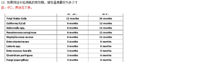 答:對檢測樣本自身的溫度沒有限制,檢測樣本中微生物,請嚴格遵照所檢測微生物對應的孵育溫度,依然根據對照表。