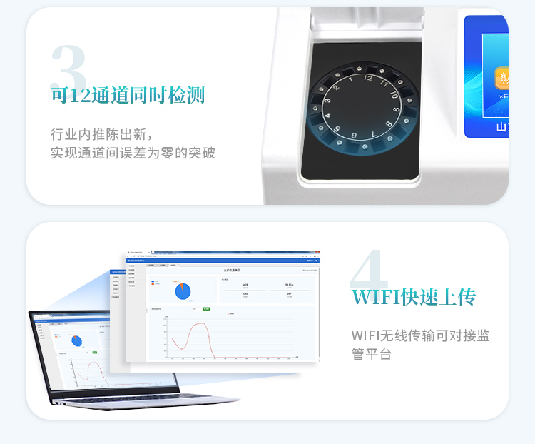 | 安卓智能操作系統,采用更加**和人性化操作,儀器具有無線聯網上傳功能,快速上傳數據,進行數據統計和分析。 | 智能化程度高,儀器具有自檢功能:具有開機自檢和調零功能,具有自動檢測重復性功能;同時,檢測完成可自動打印檢測報告和二維碼。手機掃碼可顯示出詳細檢測信息。 | 儀器帶有監管平臺,數據可局域網和互聯網數據上傳,檢測結果直接傳至食品安全監管平臺。進行區域食品安全監管及大數據分析處理與數據統計,檢測區域食品安全長短期動態,達到食品安全問題預估、預警 。 | 樣品處理簡單省力,整體操作快速、安全、便捷。 | 儀器具有自身保護功能,可設置用戶名及密碼,防止非工作人員操作等。 | 內置強大的數據庫,可在儀器上直接選擇樣品名稱、檢測指標、送檢單位等信息,也可在儀器上直接編輯錄入樣品名稱、檢測指標、送檢單位等信息并保存進樣品數據庫,方便后期操作調取使用。 | 儀器具有重新校準、鎖定、恢復出廠設置功能。 |