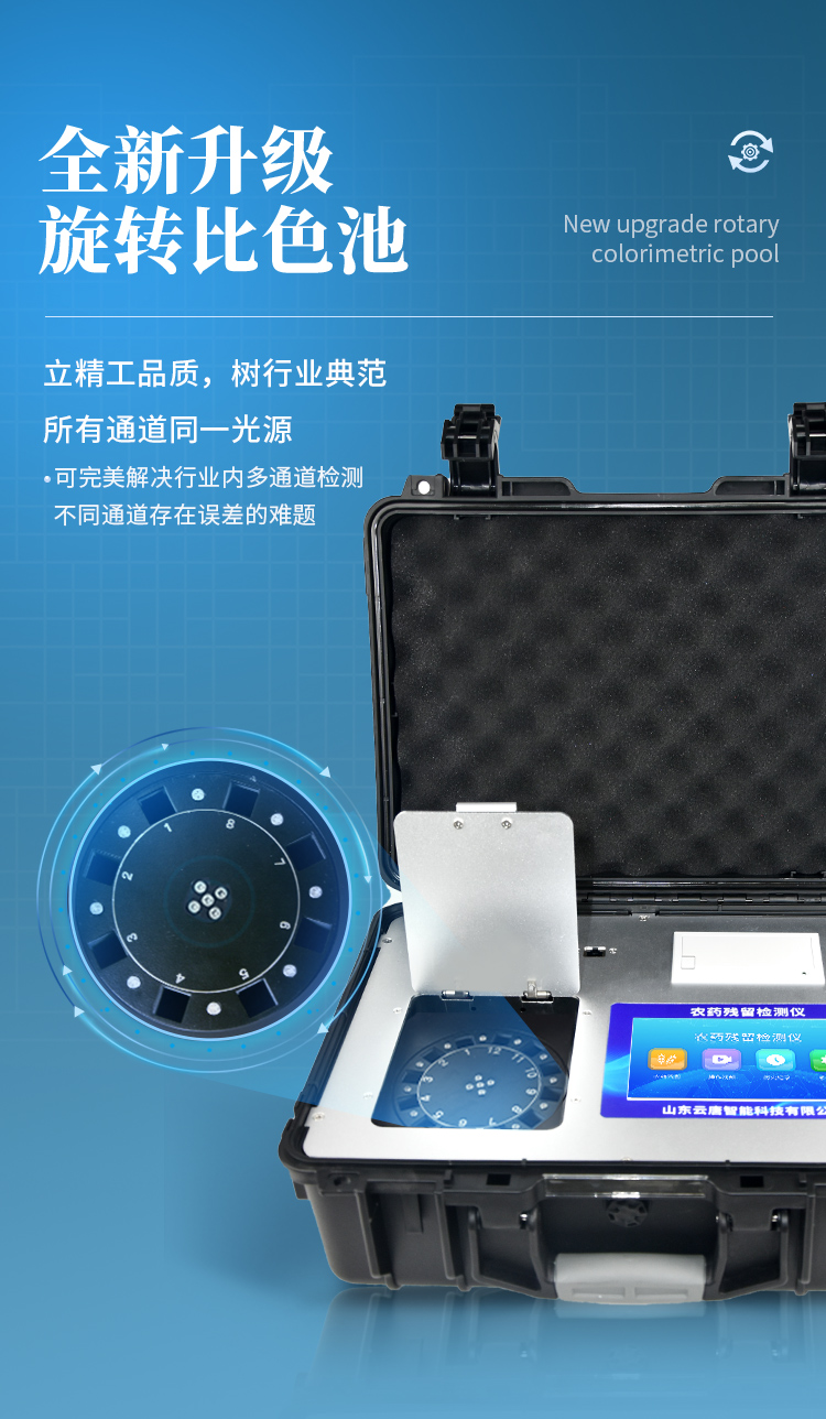 旋轉(zhuǎn)比色農(nóng)殘儀7英寸液晶觸摸屏顯示,人性化中文操作界面,讀數(shù)直觀、簡單。2026-04-02