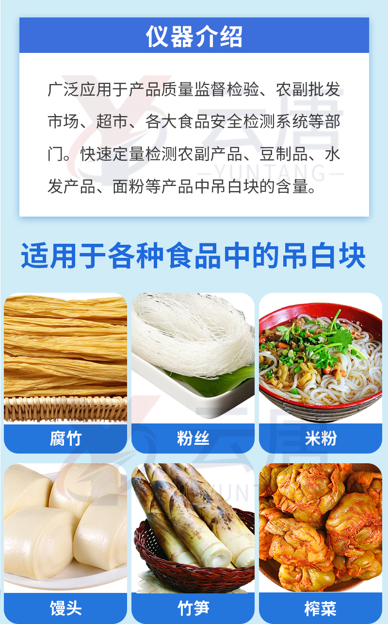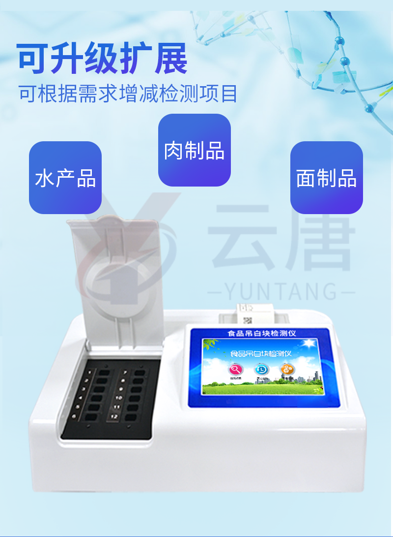 用于快速檢測食品中吊白塊,儀器預留其他項目檢測程序和端口,根據日后需求可方便的自主增加檢測項目。日后可升級為檢測,水產品,肉制品,面制品的綜合類型儀器。2026-04-14