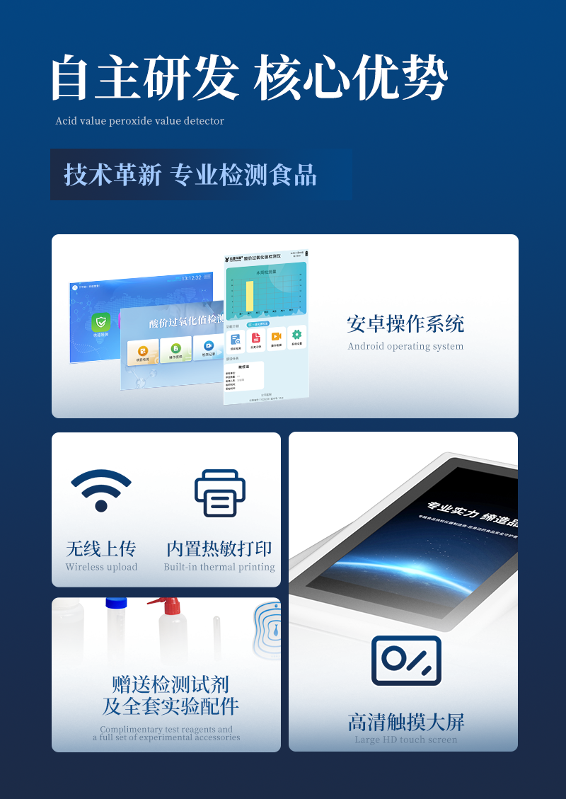 產品介紹: 山東云唐智能科技有限公司生產的酸價過氧化值檢測儀為集成化食品安全快速檢測分析設備,采用臺式一體化設計,能夠快速檢測食用植物油、食用豬油、花生油、葵花油、米糠油、食品、肉制品中的過氧化值及酸價含量;儀器預留其他項目檢測程序和端口,根據日后需求可進行遠程升級。 該過2026-04-14