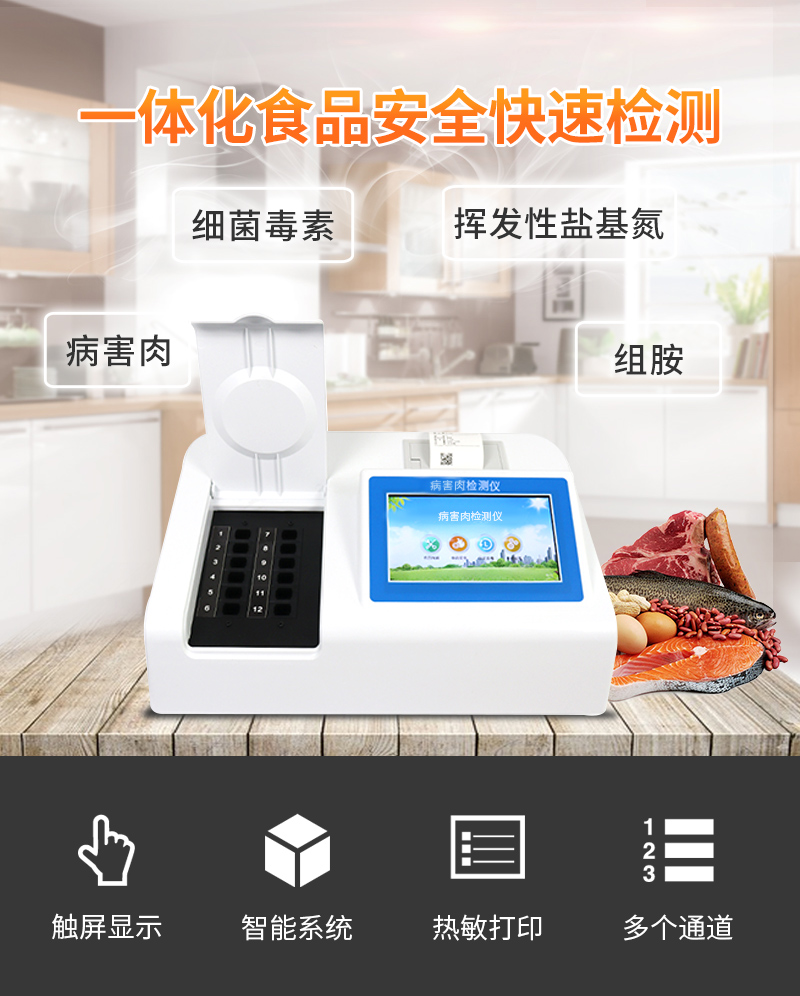 病害肉快速檢測儀可快速檢測病害肉、組胺、細菌毒素、揮發性鹽基氮,儀器預留其他項目檢測程序和端口,根據日后需求可方便的自主增加檢測項目。2026-04-14