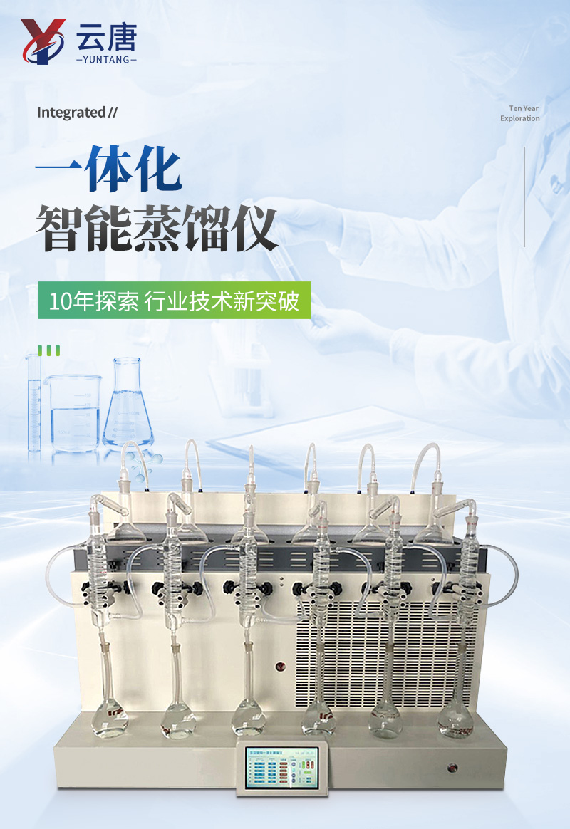 YT-**6智能一體化蒸餾儀是根據實驗室蒸餾預處理操作規程,集恒溫加熱、蒸餾終點自動控制、冷卻水循環于一體的新型智能蒸餾處理裝置。